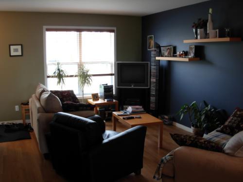 > Le salon fait parti d'une grande pièce à aire ouverte comprenant la salle à manger et la cuisine.
